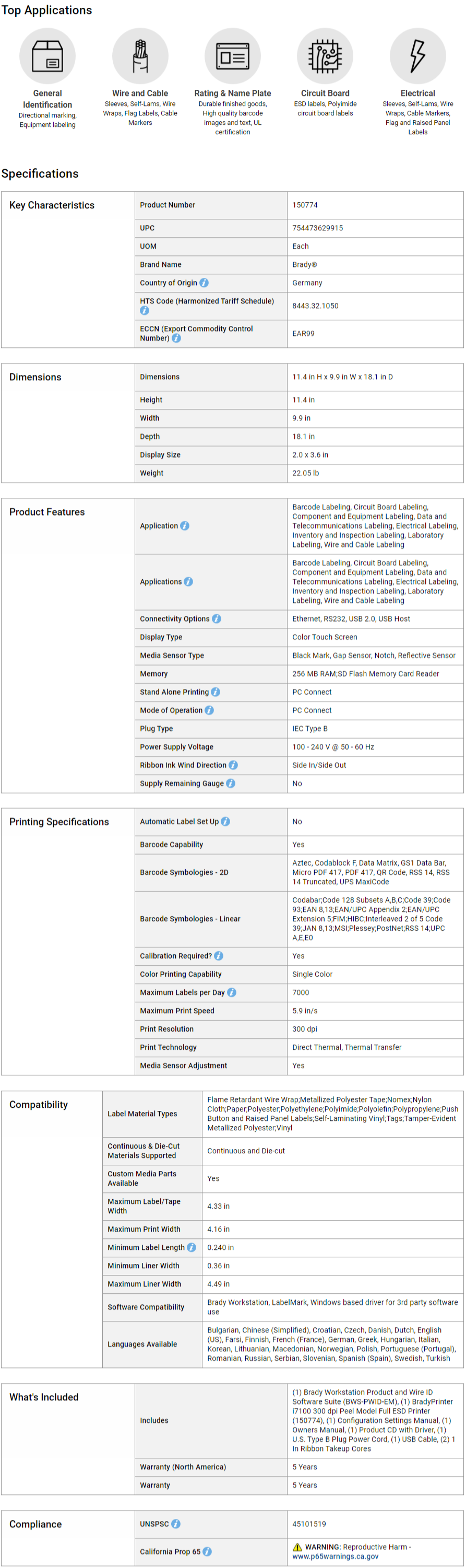 - Ships with Brady Workstation Product and Wire ID Software Suite with built-in templates for fixed text or free-form label design options