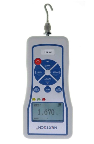Nextech DFS-Series Digital Force Gauge เลือกรุ่นที่มีความจุสูงสุดตั้งแต่ 5, 10, 20, 50, 100, 200, 500 และ 1000N (ความจุสูงสุดตั้งแต่ 0.5kgf-100kgf หรือ 1.1lbf-220lbf) Push Pull Gauge, Peak / Track Mode, Invert Display, Pass / Fail LED, USB Output, Back-Lit Graphic LCD, Metal Enclosures & Calibration Mode