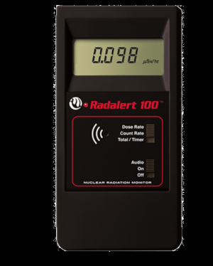Radalert® 100X เป็นเครื่องวัดค่ารังสีแอลฟ่า, เบต้า, แกมม่า และรังสี X ตรวจวัดค่าทุก 3 วินาที และมีเมนูที่สามารถเปลี่ยนการตั้งค่าสำหรับพารามิเตอร์ต่างๆ หน้าจอแบบดิจิตอล LCD liquid crystal แสดงหน่วยวัดค่ารังสี ที่เป็นมาตรฐาน SI units เครื่องยังมีฟังก์ชั่นวัดค่าของรังสีแบบรวมสะสม 9,999,000 การนับ และ 40 ชั่วโมง
