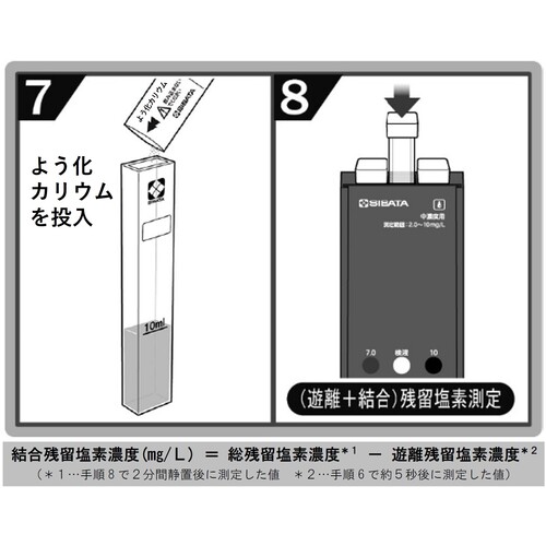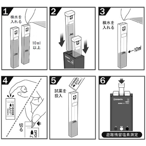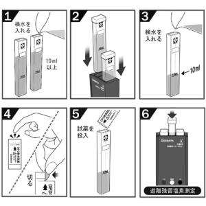 Like the "DPD Residual Chlorine Meter," this meter uses a simple measurement method based on the reaction between the residual chlorine in the test water and the DPD reagent, resulting in a pale reddish-purple color. |