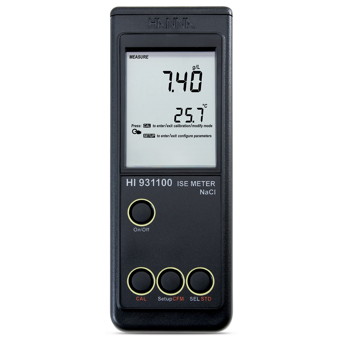 HI 931100 เป็นเครื่องวัดแบบเลือกไอออนที่ใช้อิเล็กโทรดโซเดียมเพื่ออ่านปริมาณเกลือ (NaCl) ของสารละลาย เครื่องมืออันทรงพลังนี้มีสี่ช่วงซึ่งสามารถวัดความเข้มข้นได้ตั้งแต่ 0.150 g / L ถึง 300 g / L