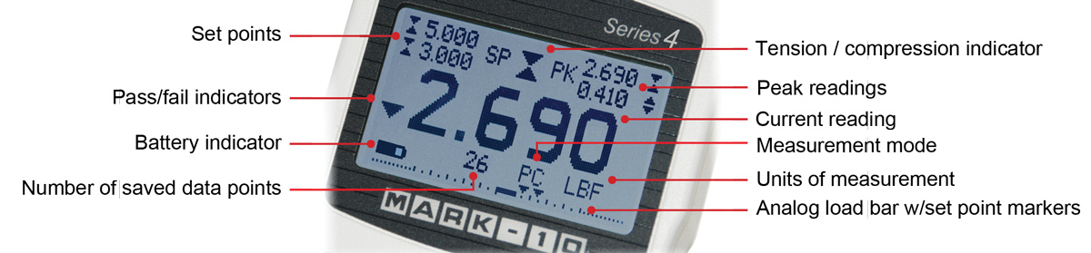 | หน่วยวัด: | lbF, ozF, gF, kgF, N, kN, mN (ขึ้นอยู่กับรุ่น) | |